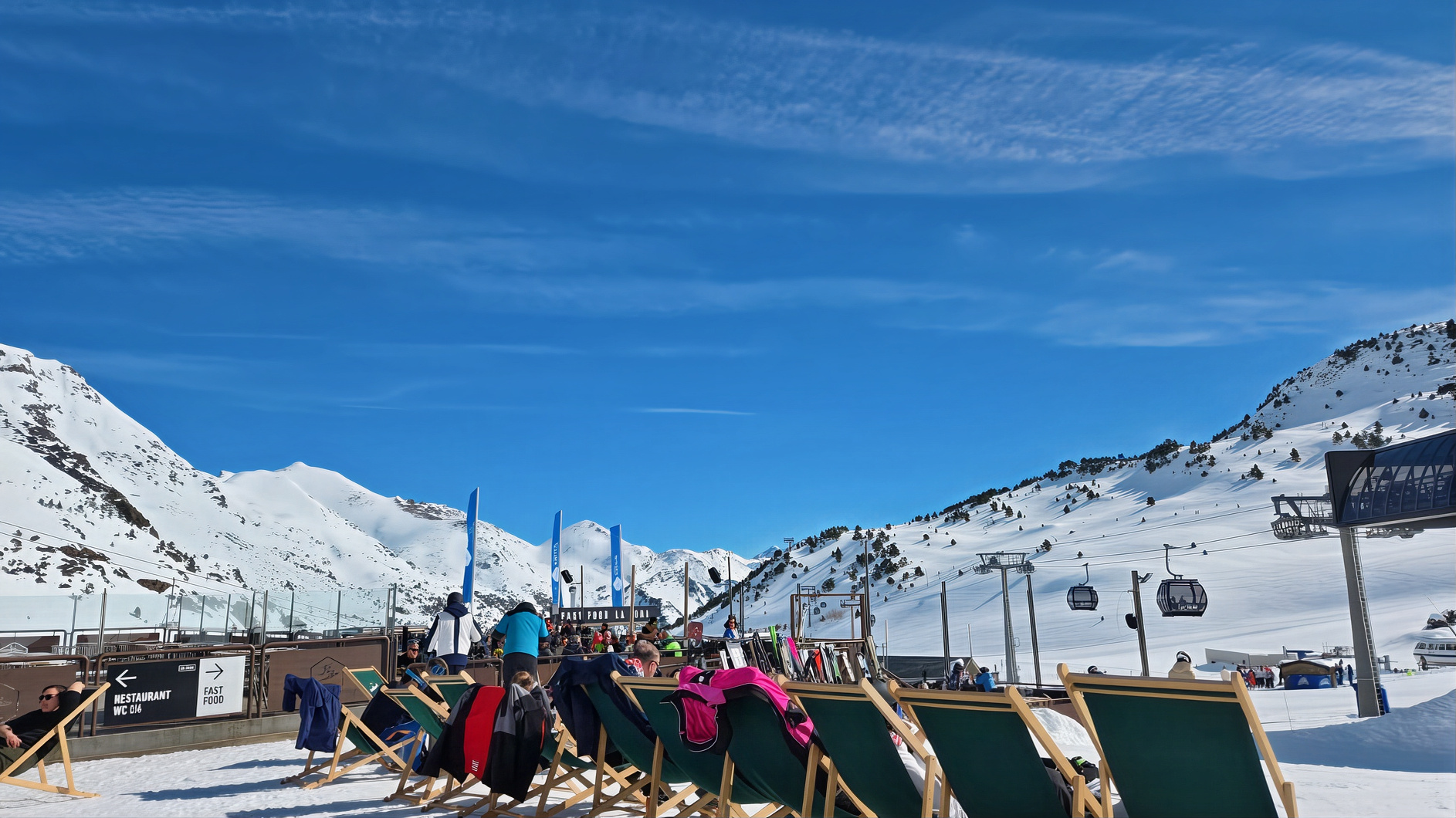 Les pistes d’Ordino Arcalís, dans les hauteurs d’Andorre, sont parmi les plus belles de la région. Ce jour-là, la montagne était dans un de ses états les plus généreux : un soleil franc, une lumière qui rebondit sur la neige avec une intensité presque irréelle, et une température douce — celle qui vous invite à poser les skis un moment, à trouver une chaise longue, et à ne plus bouger.